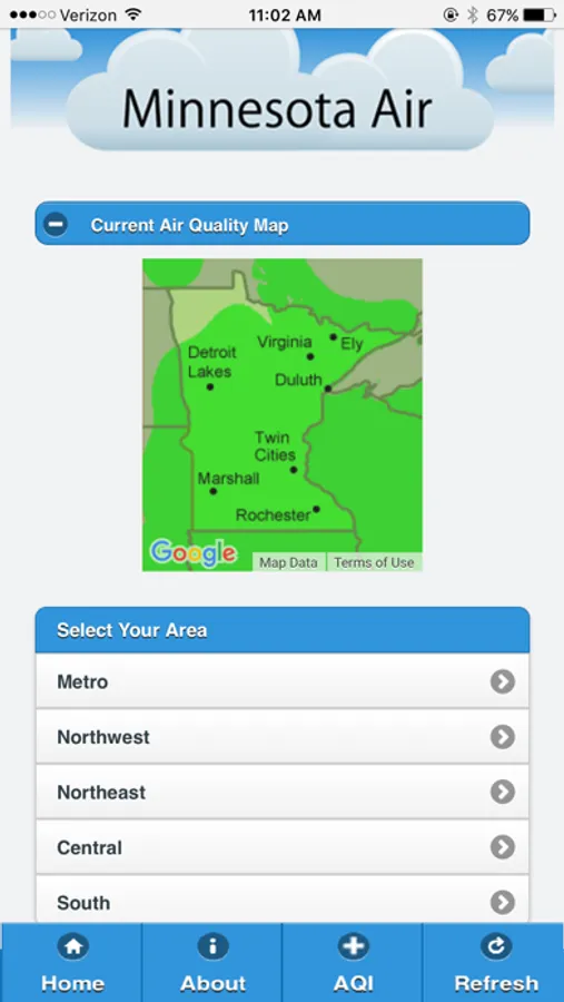 The Minnesota Air App provides daily air quality forecasts and real-time air quality conditions to help you plan your daily activities and protect your health! The latest update now includes push notifications for air quality conditions in your area!