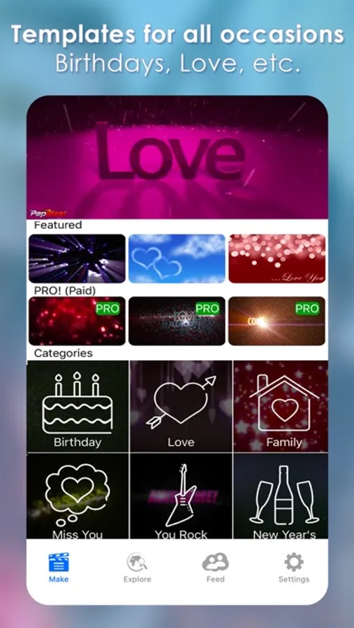 The PepBlast team develops new apps to make video with pictures and music, including the PepBlast Motion Pictures Slide Show Maker with Music. Over the years, our technology to create video from photos has evolved from picture slideshow software to PepBlast movie app to make a video from pictures. PepBlast app allows users to make a slideshow video or make a video with pictures in motion, mixed with cool music. Users turn pictures into video easily. In order to make your own slideshow, or make your own video, PepBlast app offers a photo editor, innumerous movie styles, and tools to make beautiful short movies. Our movie creator app to make video from photos is fast, easy and fun! The video creator runs in the PepBlast cloud to make movies from pictures and share in social networks. There are thousands of free movie templates, backgrounds, and songs for your movie with pictures. Video samples are shown at http://www.pepblast.com