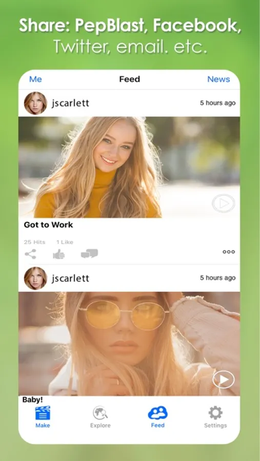 Watch shared movies in a PepBlast feed, follow your friends easily, allow others to follow your stream, and experience trending PepBlast movies.