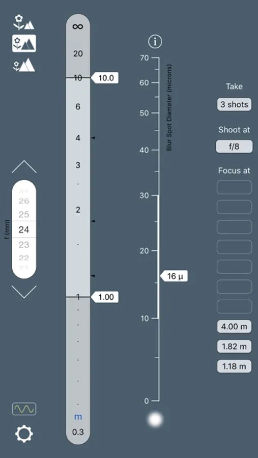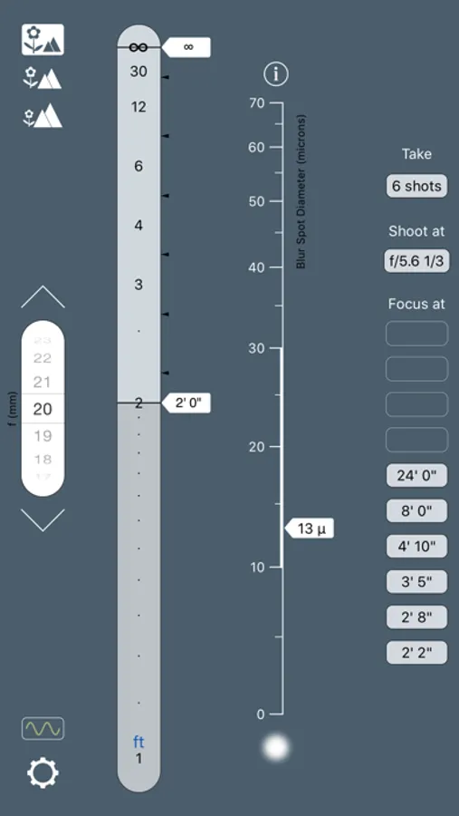 The software for stacking photos is simple and easy to use. But what about the process of taking the shots? How many shots should you take? On what distances should you focus? And what is the best aperture to use? This is where FocusStacker comes in, making guesswork a thing of the past. For the particular image sharpness standard that you specify, FocusStacker determines exactly what you need to know: the minimum number of shots to take, the distances to focus on, and the aperture to use.