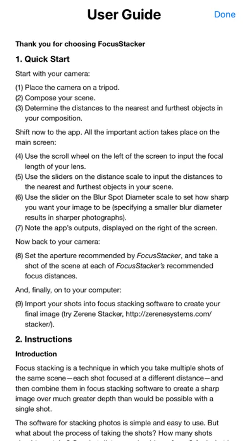 4) FocusStacker is a calculating tool—it does not access or use the iPhone's or iPad's built-in camera.
