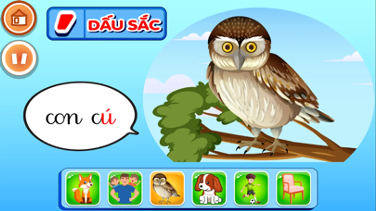 - Chọn đúng dấu chính tả với hình cho trước, ví dụ ứng dụng hiện lên hình con cò và hai đáp án là "cò" và "cỏ" thì người dùng phải chọn là "cò".