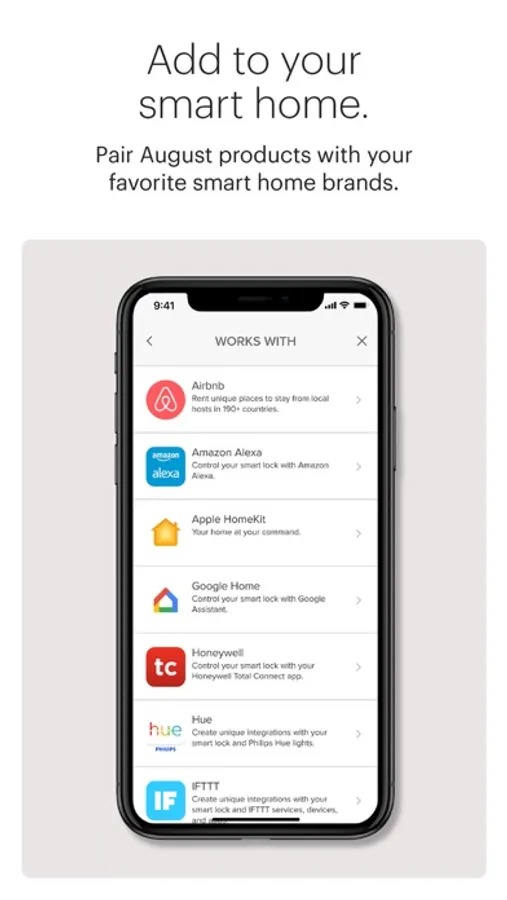 Works with your smart home. August works with many of the top smart home systems including Apple HomeKit, Samsung SmartThings, Philips Hue and more.