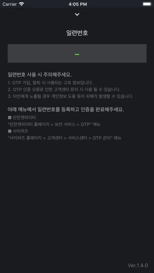 네오플OTP를 사용하는 게임에서 일련번호와 OTP인증번호를 등록하여 가입합니다.
