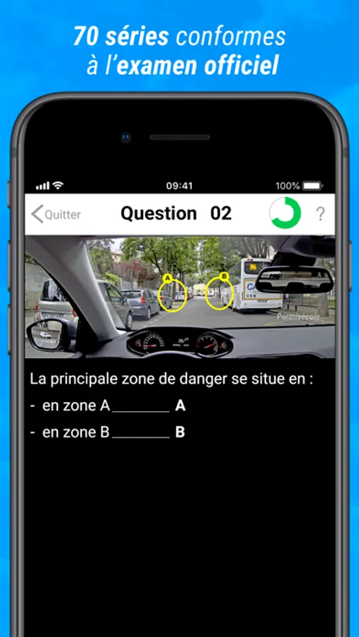Apprendre, s’entraîner et réussir le code de la route grâce à une pédagogie qui a fait ses preuves en auto-école, pour être prêt le jour de l’examen.
