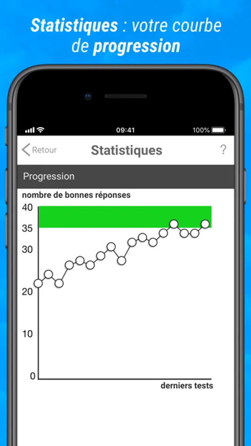 - Suivi statistique avec graphes, conseils et historique des tests effectués permettant de revoir ses erreurs