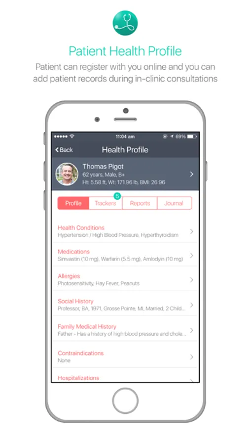 View details of their medications, health conditions, health trackers, medical test reports, allergies, surgeries & procedures, vaccinations and goals. Your patients can also access their own records through your Virtual Practice.