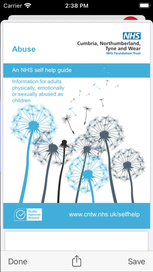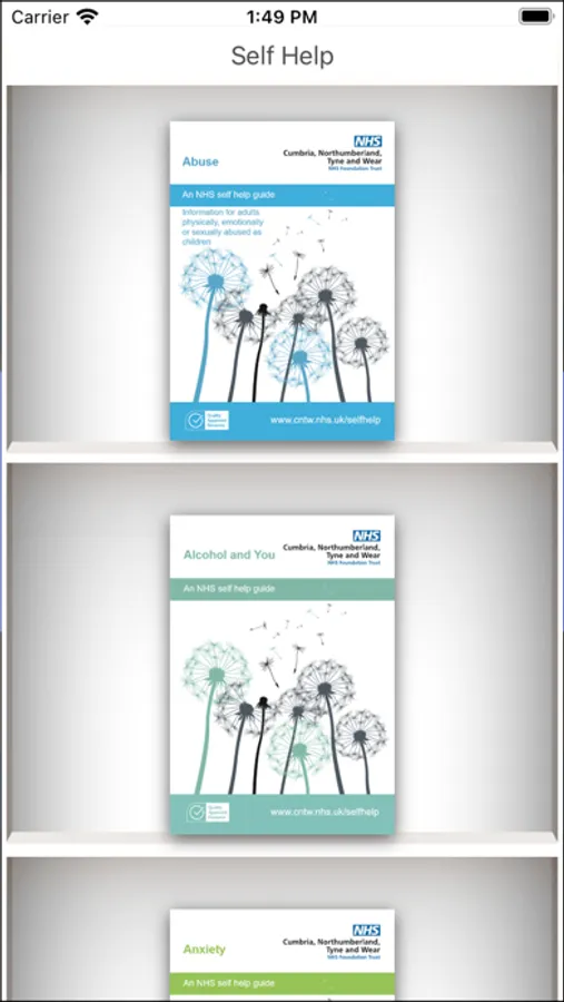 NTW’s Self Help app gives you access to the full range of 23 mental health self-help guides. These guides, three of which have been commended at the British Medical Association Patient Information Award, have been written by NHS clinical psychologists with contributions from service users and healthcare staff.