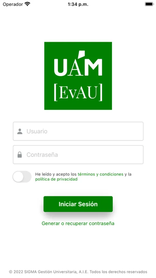 El día del examen se te proporcionará el Usuario y Contraseña.