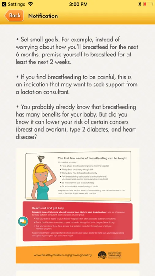 Other features include: content for parents and providers in English and Spanish, tips for parents with a focus on early feeding and nutrition, infographics and other multimedia assets, push notifications, and the ability for providers to customize their profile and email tips and infographics directly to parents.