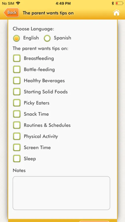 As a healthcare provider, this app allows you and the parent to identify healthy active living topic areas that are important to the family during a patient encounter. Also included is the option to add goal setting to motivate older children to strive for 5 servings of fruits and vegetables, 2 hours of screen time or less, 1 hour of physical activity or more, and 0 sugary beverages. The resulting personalized action strategies can be printed or emailed directly to the parent.