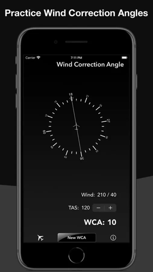 - WIND CORRECTION ANGLE: Visualized WCA calculations, completely with instructions.