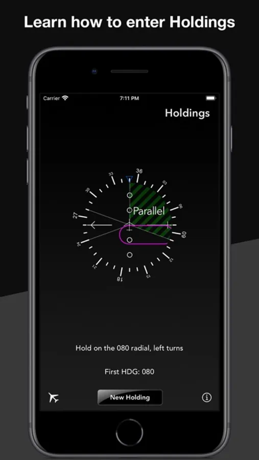 - HOLDING ENTRIES: Calculate randomly generated holding entries. The solution is displayed directly on the instrument, making it easy to visualize the actual holding. Includes calculation of first heading for the entry.