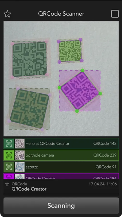 - Simply hold the viewfinder over QRCodes and watch the results arrive instantly.