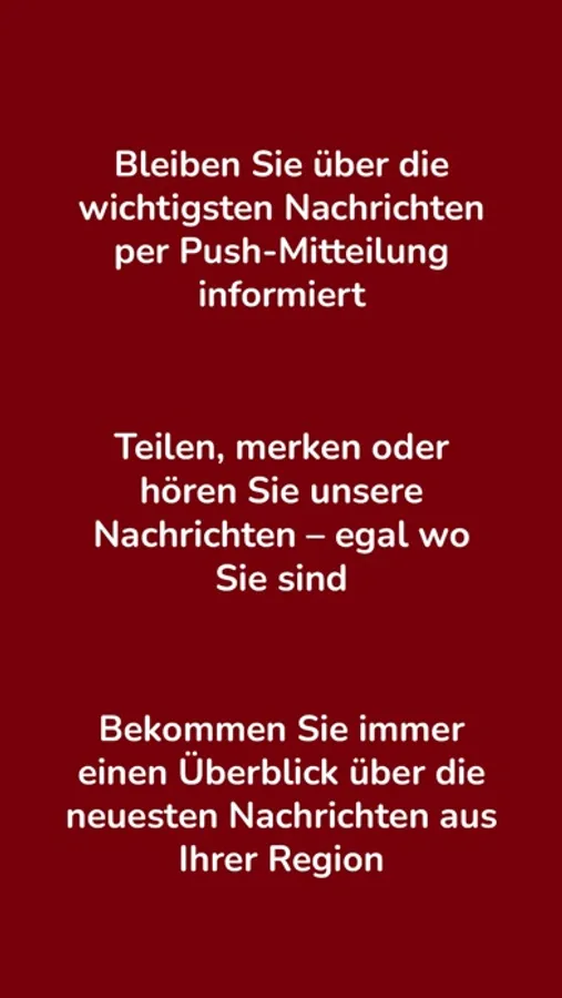 Aktuelle Artikel wie Top Nachrichten und Neuigkeiten aus Ihrer Region warten auf Sie. Mit einmaliger Auswahl erhalten Sie in der Übersicht immer Nachrichten aus Ihrer Wunschregion angezeigt.
