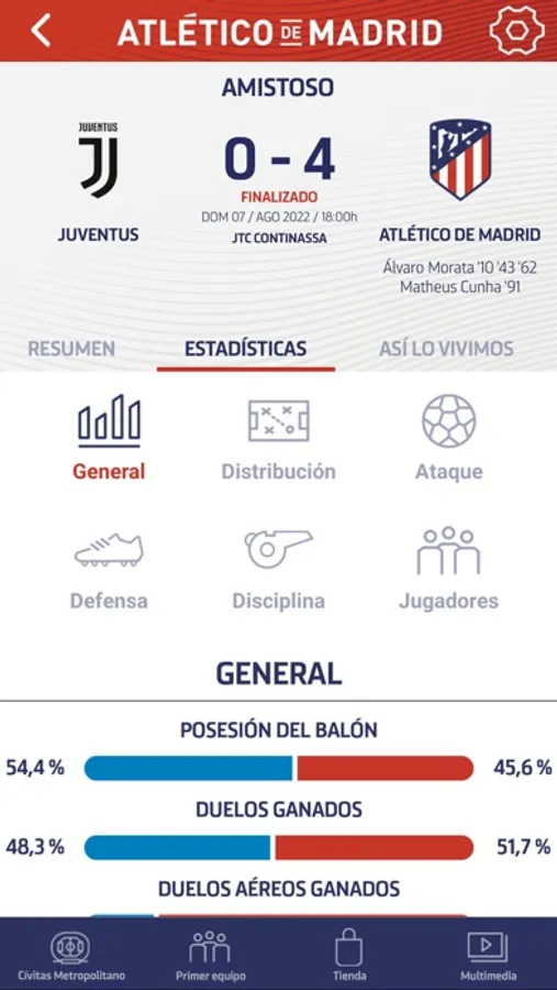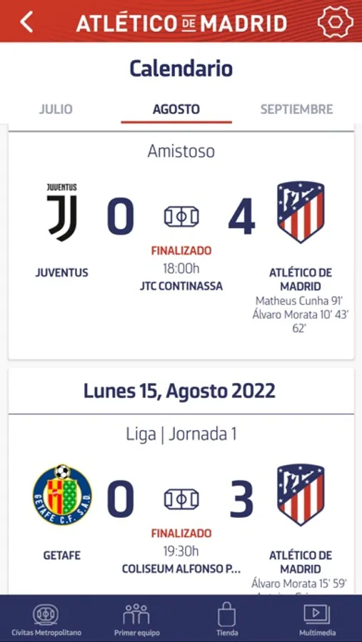 Welcome to your meeting point with the team! On the official Atleti app you can follow all the information about our team, access match statistics and set up your alerts so you don't miss anything. Download it now and be the first to find out about our competitions and receive exclusive content for the new season!