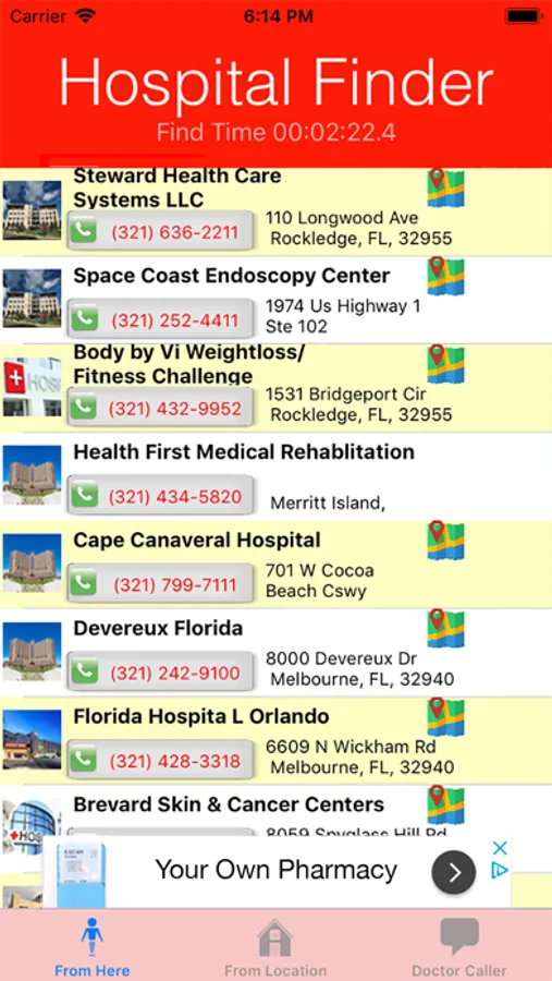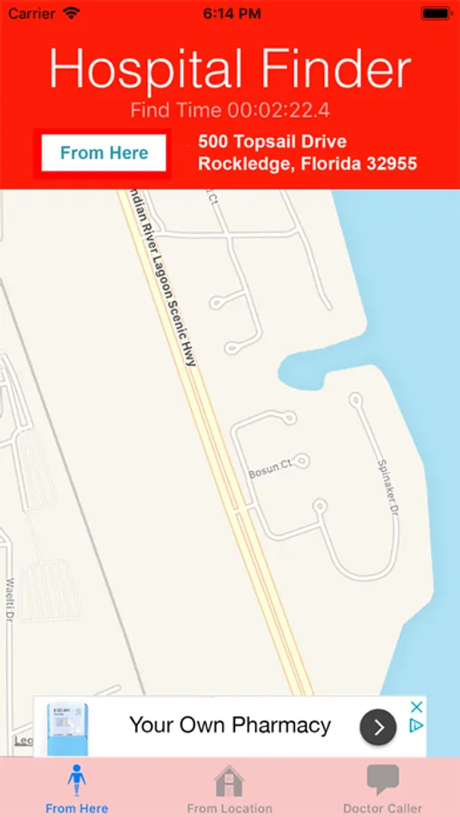 Your current location is also presented in case you need to call an ambulance. Hospital Locator can also locate all hospitals given a state and city selection.
