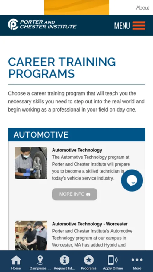 This Porter and Chester Institute (PCI) App was developed in response to the increasing demand from PCI students and prospects for a more efficient tool to learn more about, and engage more effectively, with PCI. This mobile connectivity advantage enhances prospect/student/staff communications and engagement of curricular activities and reinforces the overall philosophy of PCI: to train our students in the technical and professional skills essential for their chosen career.