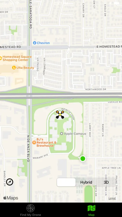 If you were forced to land your drone some distance away, this convenient App will determine the latitude and longitude of the drones' location and its' distance from you. The inbuilt compass can then direct you to the drone, saving you a haphazard and time consuming search.
