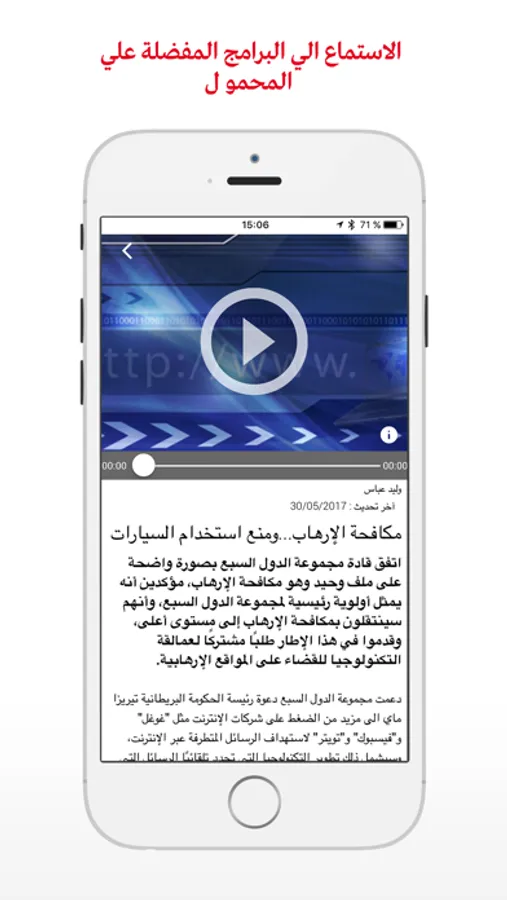 Téléchargez l'application et suivez en direct l'actualité internationale, en arabe.