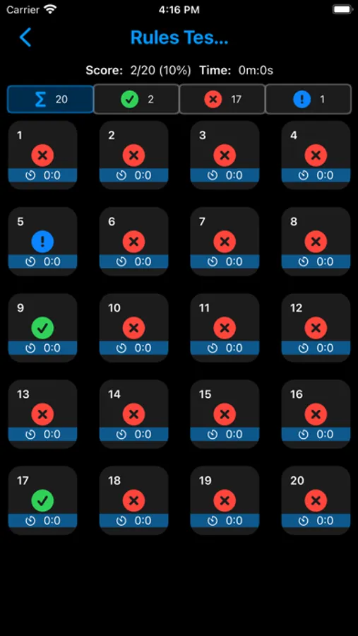 Riding Test simulates the written test and at the end presents you a detailed score which you can e-mail yourself.