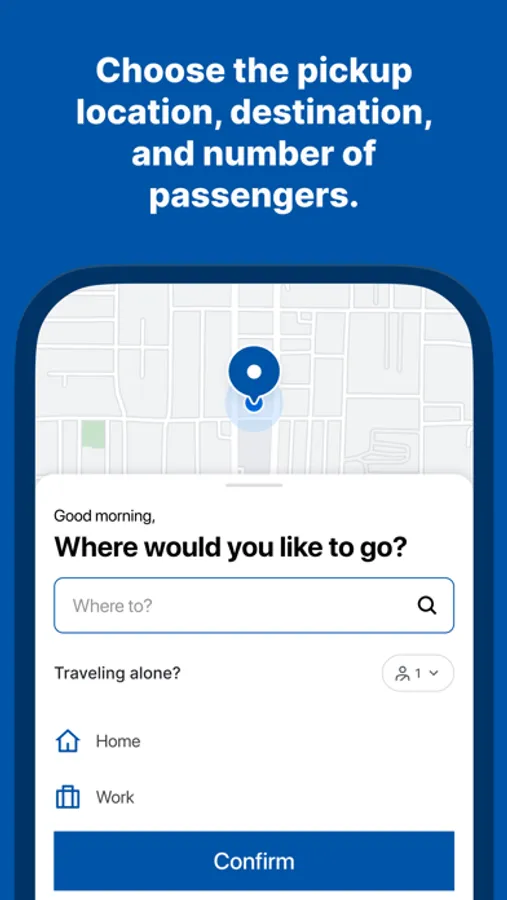 To book a ride using your smartphone, simply set your pickup and drop-off address, choose a pickup or drop-off window, and indicate if you're bringing additional passengers. You can also book a ride over the phone by calling and speaking with one of our dispatchers.