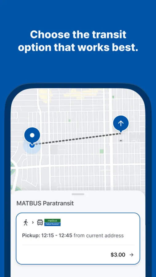 MATBUS Paratransit is a shared ride service, which means you may not go directly to your destination without your bus operator picking up or dropping off other riders along the way.
