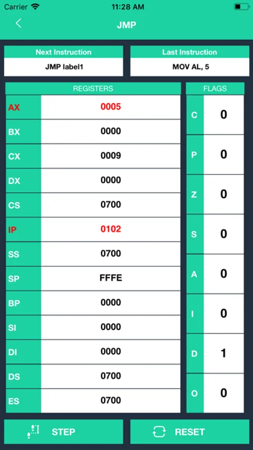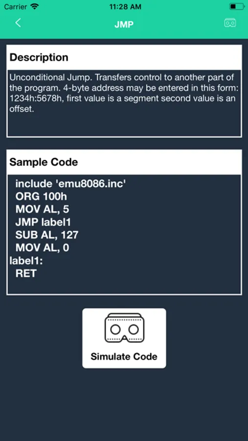 8086 simulator is a simple iPhone application where you can study about 8086 Instructions and program execution. You will be able to simulate assembly language programs. Also you can execute the program step by step and see how the values of all registers and flags are changing with the execution of each instruction. All instructions used in the 8086 microprocessor and a sample program for each instruction is included in this app.