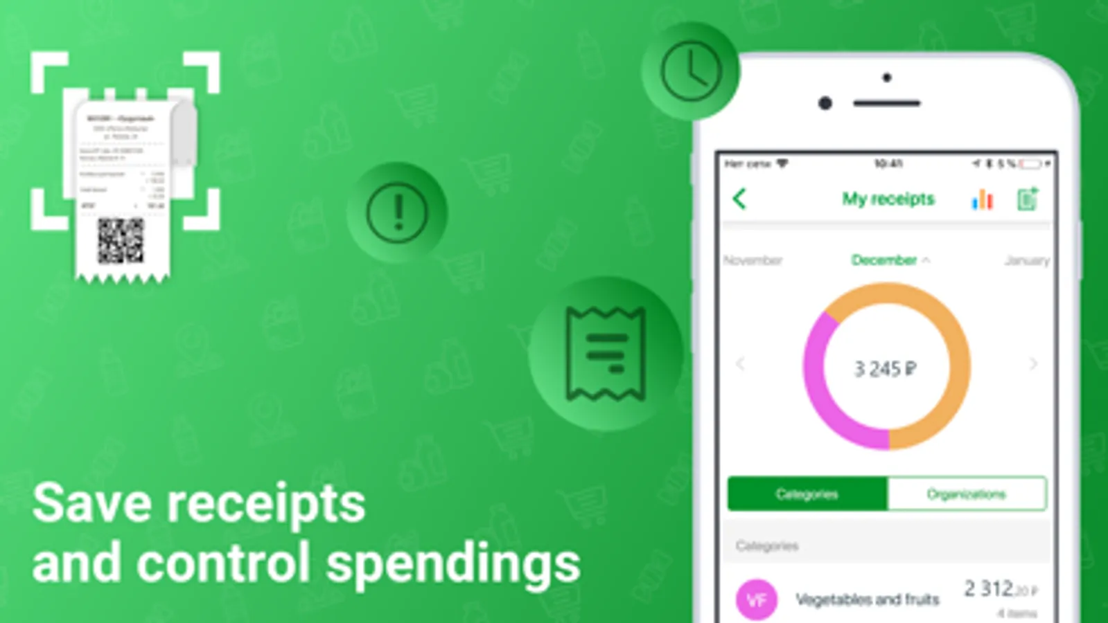 - QR code scanner will help you scan a receipt to keep track of expenses and finances, as well as to see which categories of goods you spend your budget on the most.