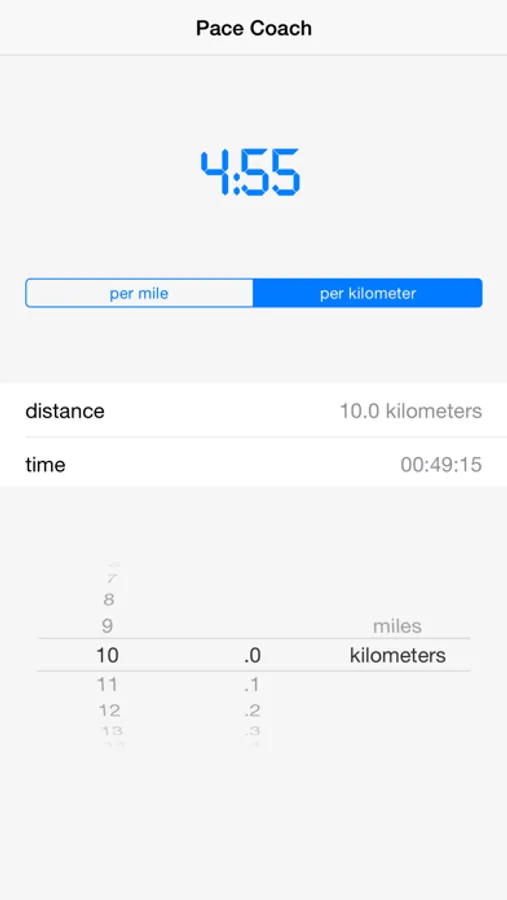 Accepts both mile and kilometer as input distances and will calculate pace per mile or pace per kilometer.