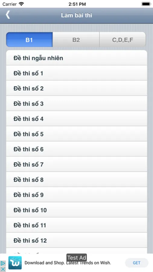 • Chế độ làm bài thi với các bộ đề được sinh ngẫu nhiên, giống như thi thật.