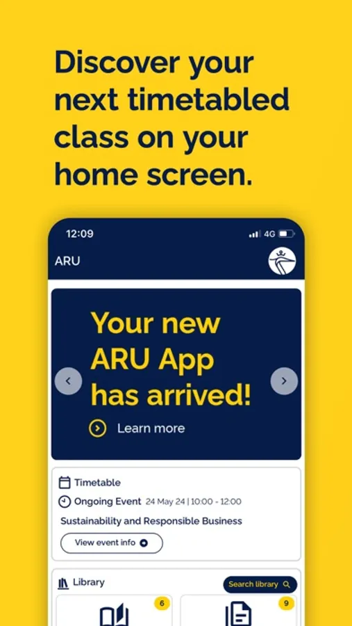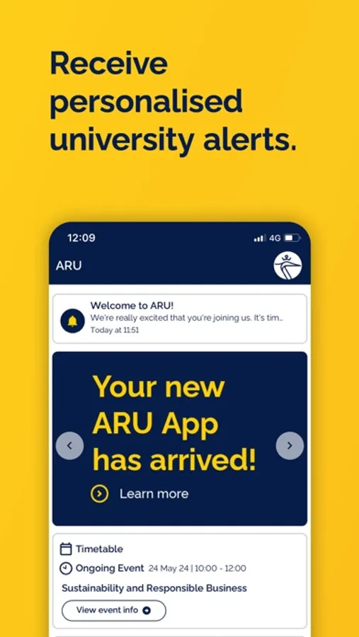 Based on student feedback, we've made some improvements to the design and functionality of the ARU app to make sure it's easy to use and faster than ever. The app is brighter and easier to navigate, with plenty of exciting content and features to support you while studying at ARU.
