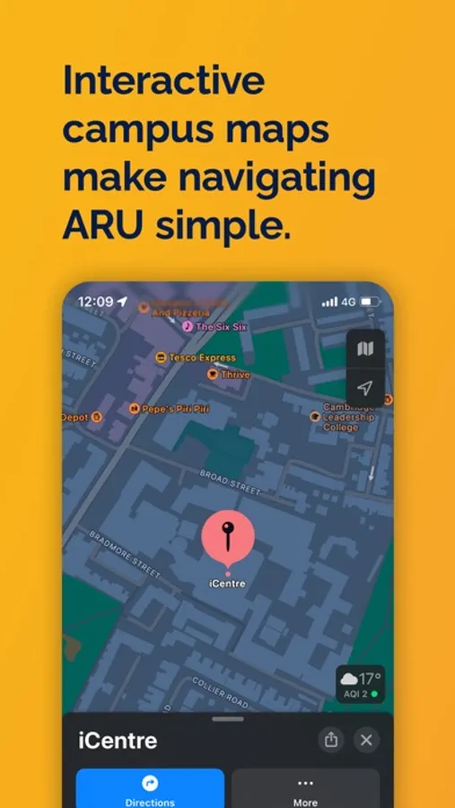 We've introduced an interactive map feature to help you navigate our campuses, and you can discover your next timetabled class on your personalised home screen. Recently, we've also added display themes, a dark mode feature, improved navigation, food and drink menus on campus, and even a university alert banner so you can get important updates even faster.
