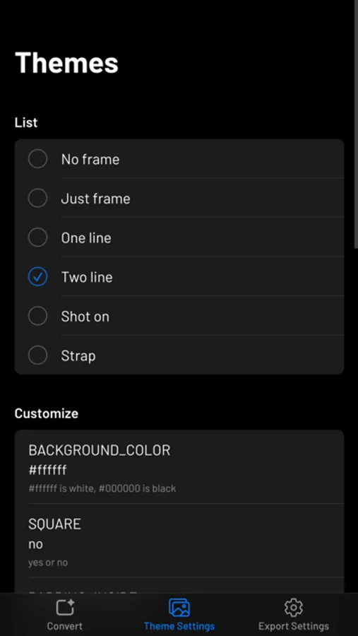 This app interprets the EXIF metadata of photos and adds frames to the pictures according to the themes chosen by the user.