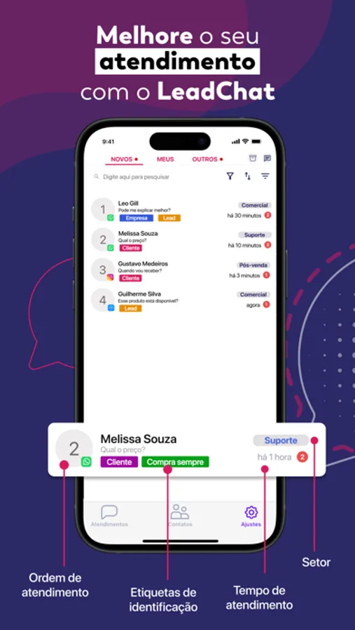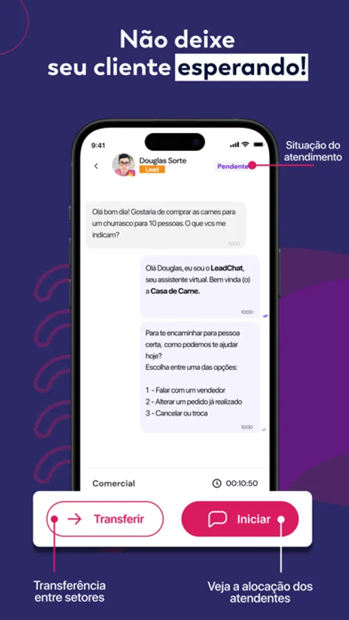 - Apenas um número de WhatsApp para vários atendentes e setores