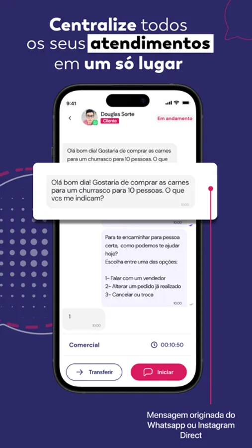 Crie uma central de atendimento com uma plataforma fácil de usar e que funciona de verdade! Concentre todas as conversas de WhatsApp e Direct em um único lugar e gerencie os atendimentos do seu time.