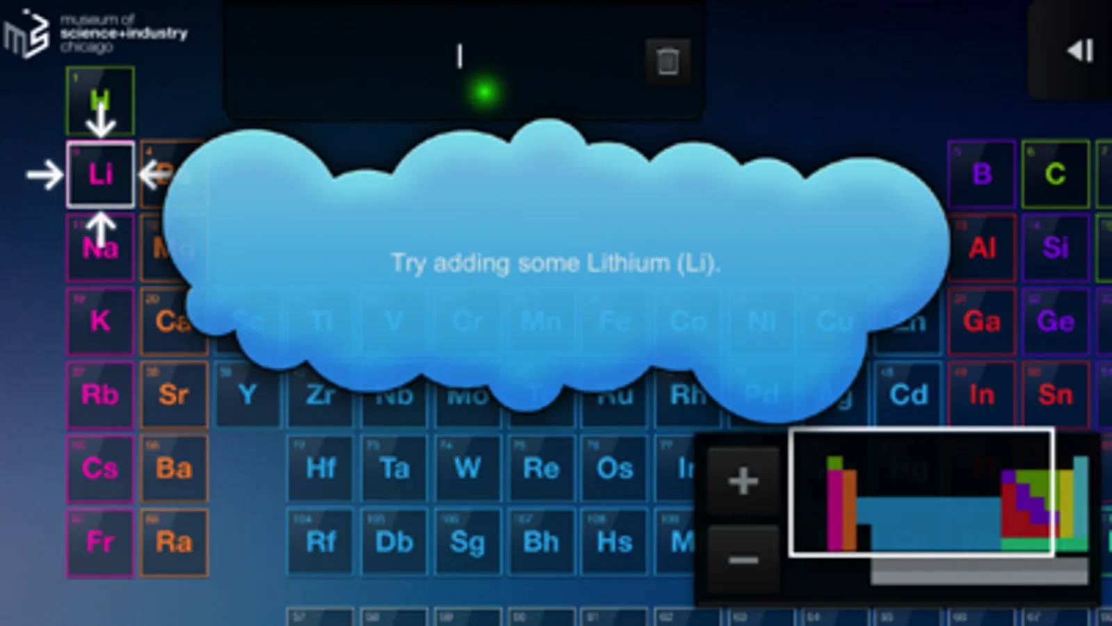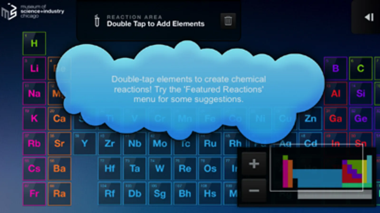 - Initiate nearly 300 virtual chemical reactions by dragging elements into the Reaction Area.