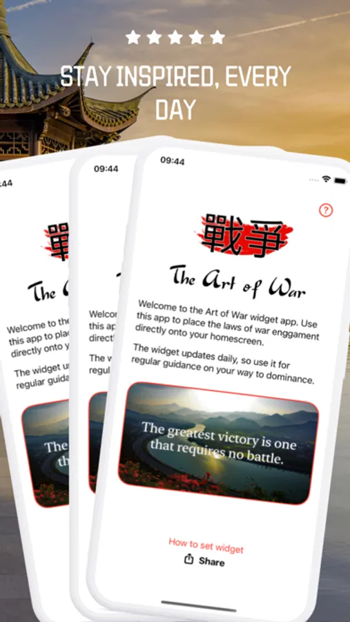Welcome to "Art of War - Quotes Widget," your daily portal to the timeless wisdom of Sun Tzu's Art of War. Unlock the secrets of strategic mastery with a simple tap, as this widget delivers a daily dose of inspiration and motivation right to your home screen.