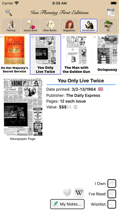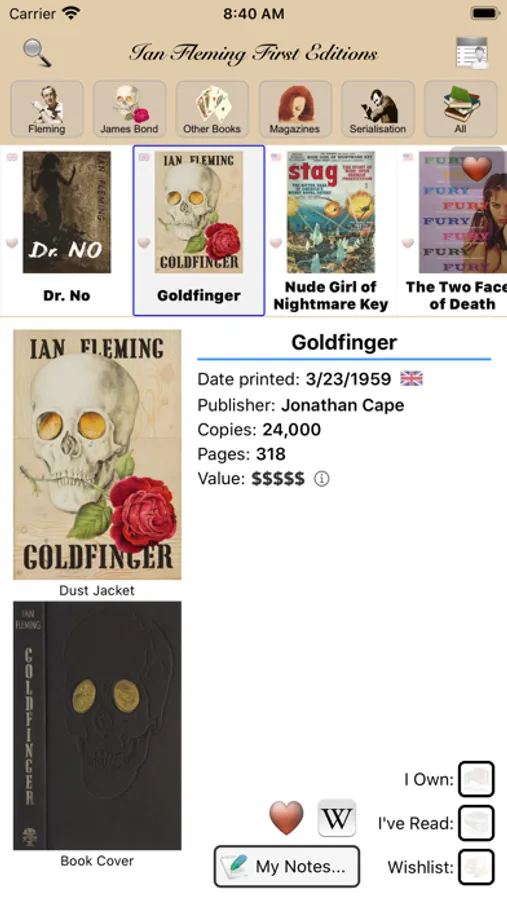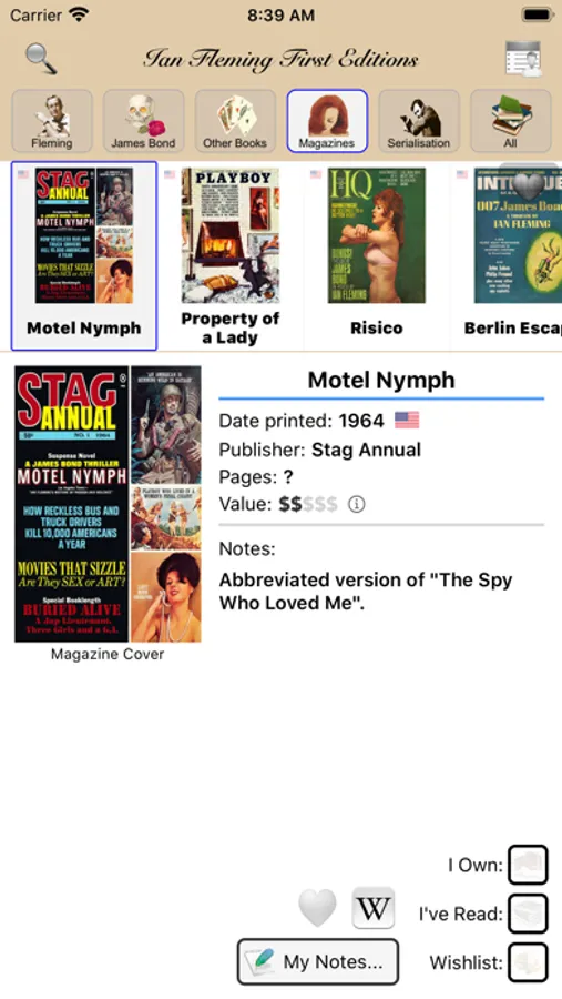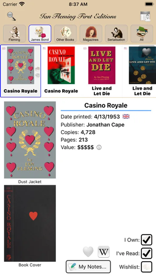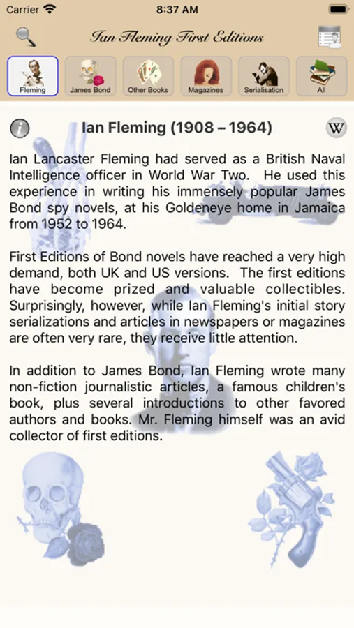 A must for James Bond collectors, this app is a "Field Guide" aid for helping book collectors to visually identify the First Edition novels and other writings of Ian Fleming.
