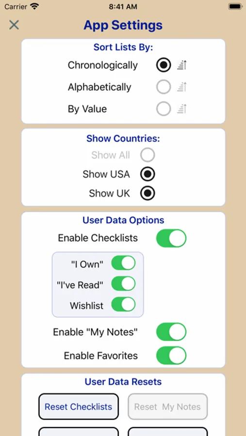 - User customization; including chronological or alphabetical ordering of lists, etc.