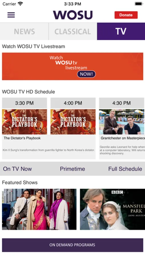 The WOSU App allows you to watch and listen to all of WOSU’s programs, Radio and TV!