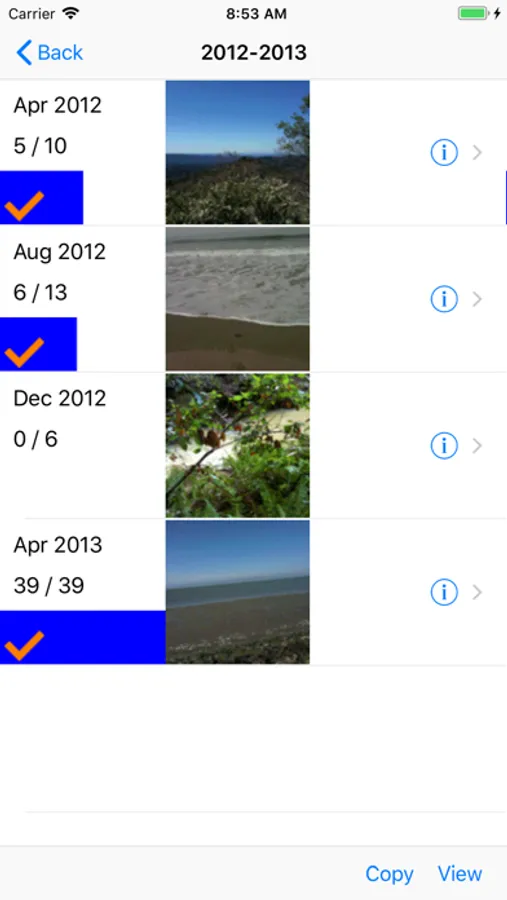 o) Choose pictures by year, month, day, or hour