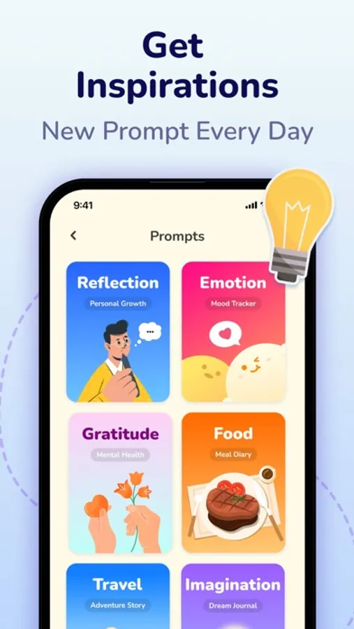 - Journal prompts on various topics to spark your diary