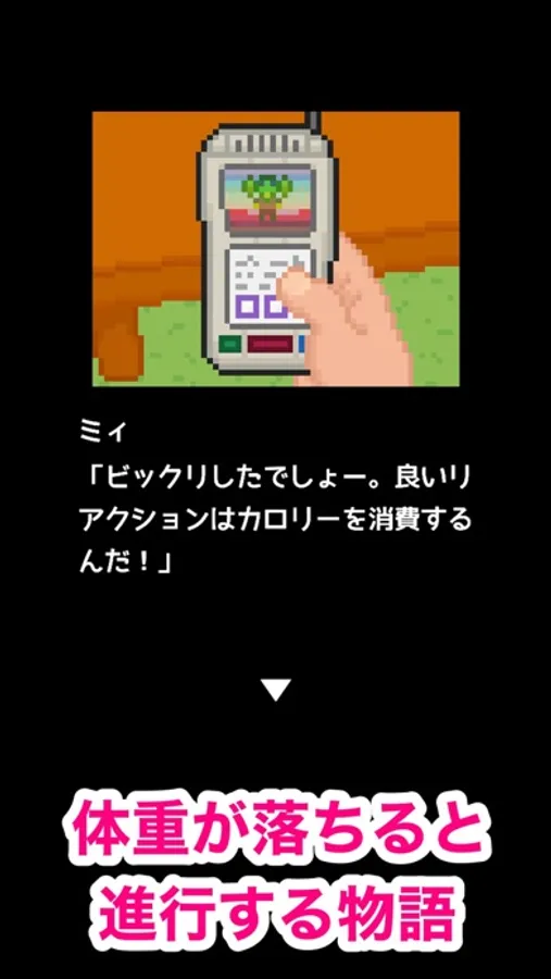 あなたの体重が目標値に近づくごとに、ストーリーが進行!ドット絵が可愛いダイエットゲームアプリが登場!