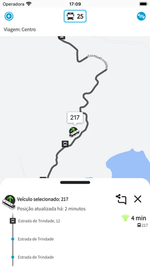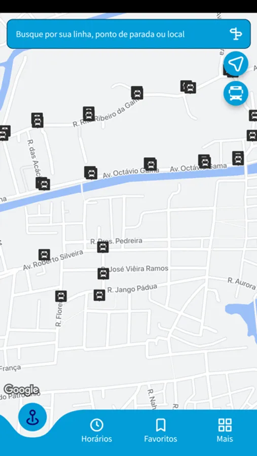 - Localização em mapa dos pontos de parada e de venda de créditos nas proximidades