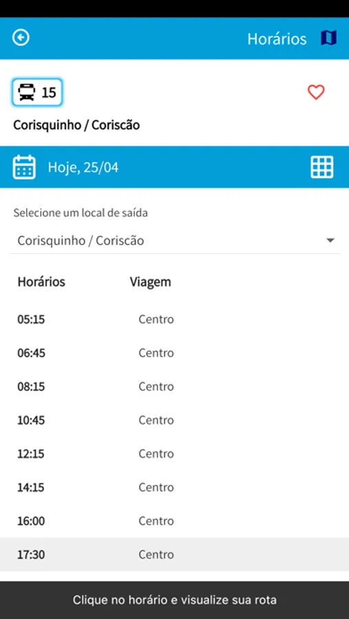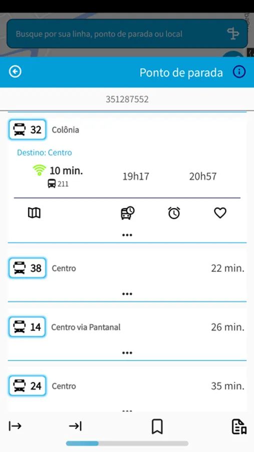 - Favoritar linhas. pontos de parada e deslocamentos planejados