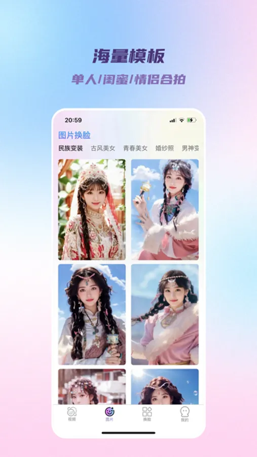 海量模版库: 不管是好莱坞明星,还是经典影视角色,总有一款适合你的风格。