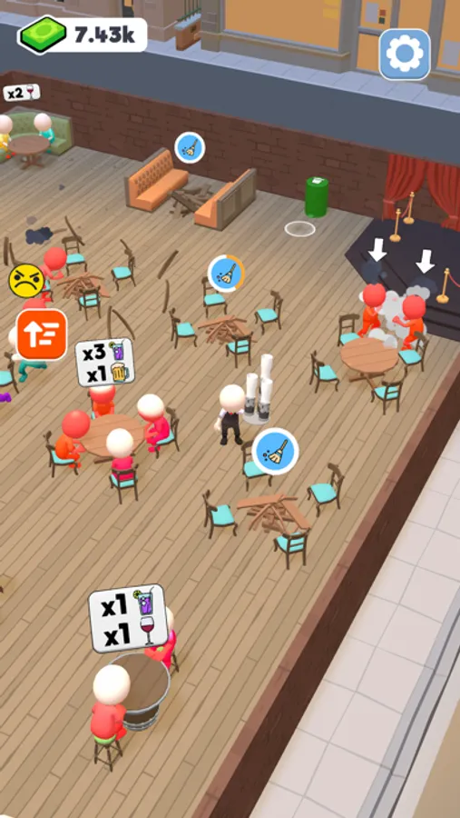 As the manager, it's your responsibility to ensure your bar runs smoothly. Take orders, deliver glasses to the bar, and make sure customers are served promptly to avoid any bar fights. Recruit and train talented baristas to keep up with the growing demand. Each new barista brings unique skills that can help streamline operations and boost your profits.