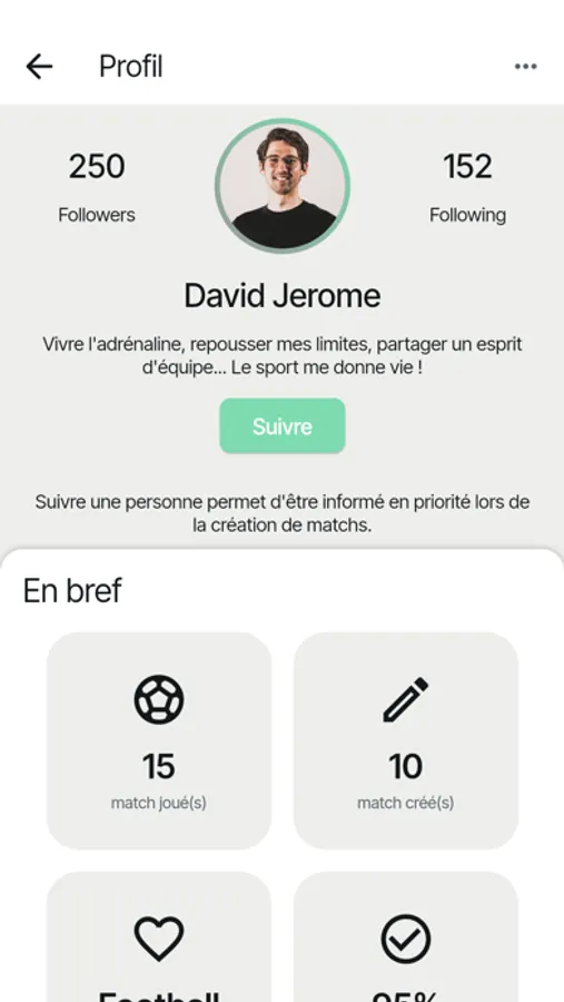 Matchs en un clin d'œil : Consulte les détails (lieu, horaire, niveau, etc.) et inscris-toi en quelques secondes.