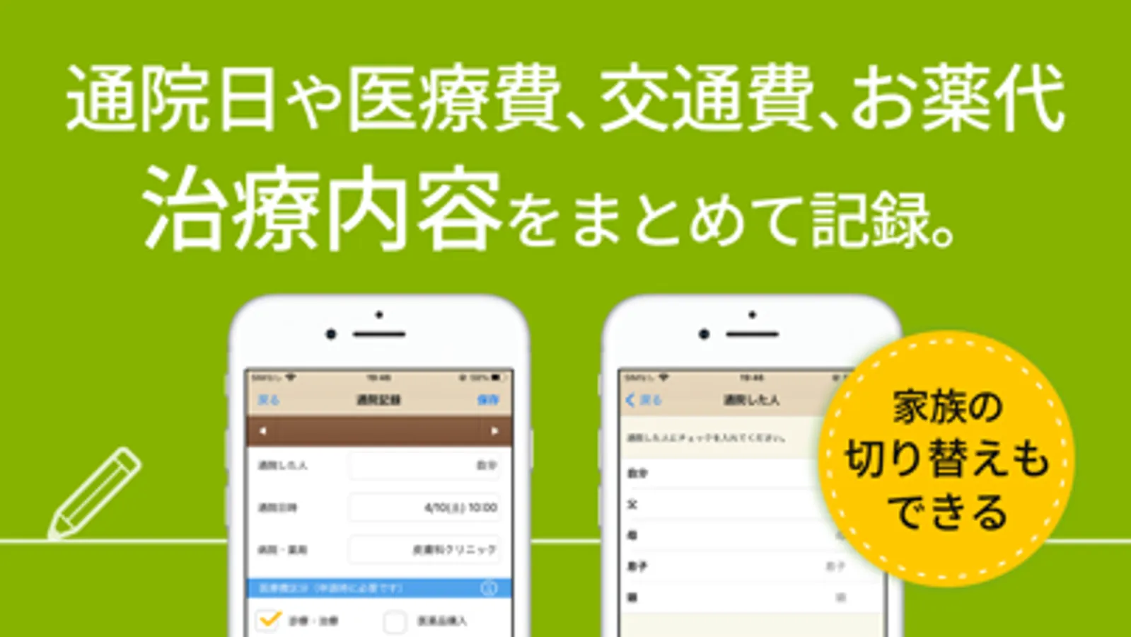 【家族全員分の通院記録ができる】